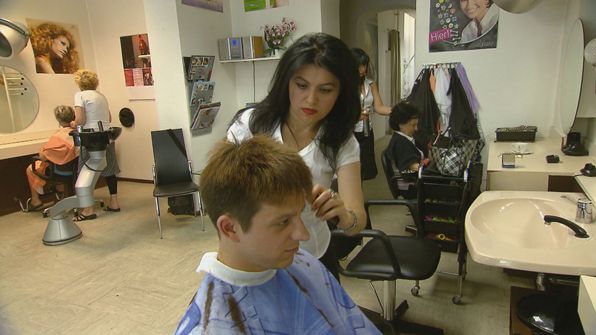 Berlin’de bir kuaför dükkânı vardır. Alman müşterilere de hitap edebilmek için