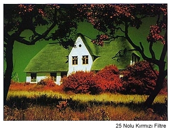 When using Color IR. film without a filter the color will be violet color. The following color shifts are achieved with filters.