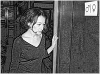 Bir kadın ile bir erkek unisex bir tuvalette karşılaşır.